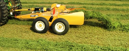 The 7500T Accelerator is a 7 ft. trailed roller type hay conditioner designed to minimize drying time. Hay is directed through adjustable steel crimping rollers for consistent conditioning. Tandem axles smooth out rough terrain for more thorough crop pick up.